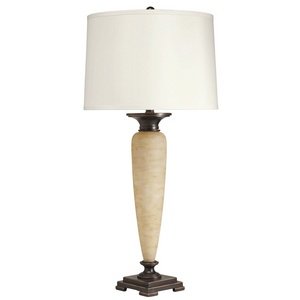 Kichler Lighting 70855ca Gwynham Light Table Lampbronze Finish Painted Beige Glass Hardback White Fabric Shade